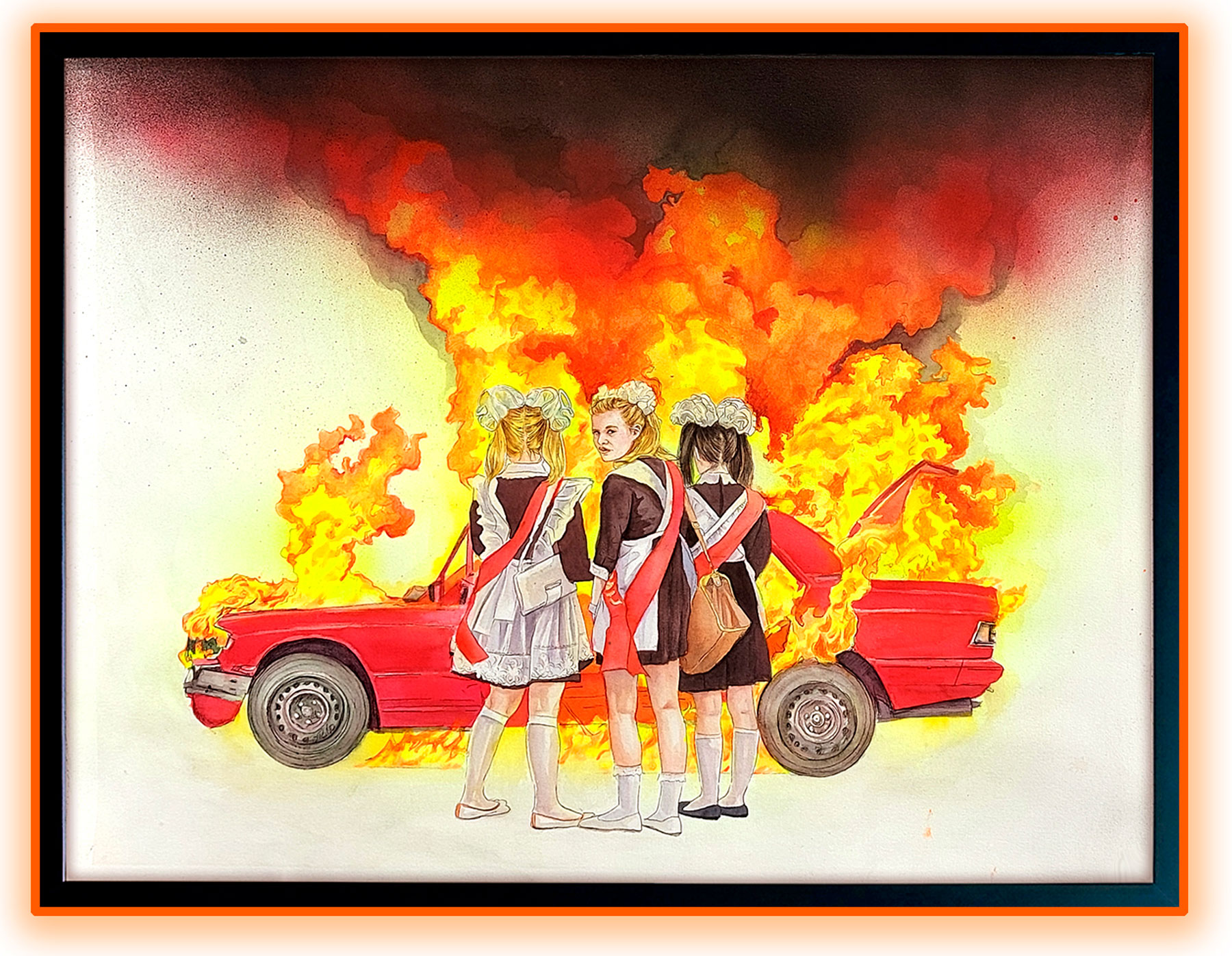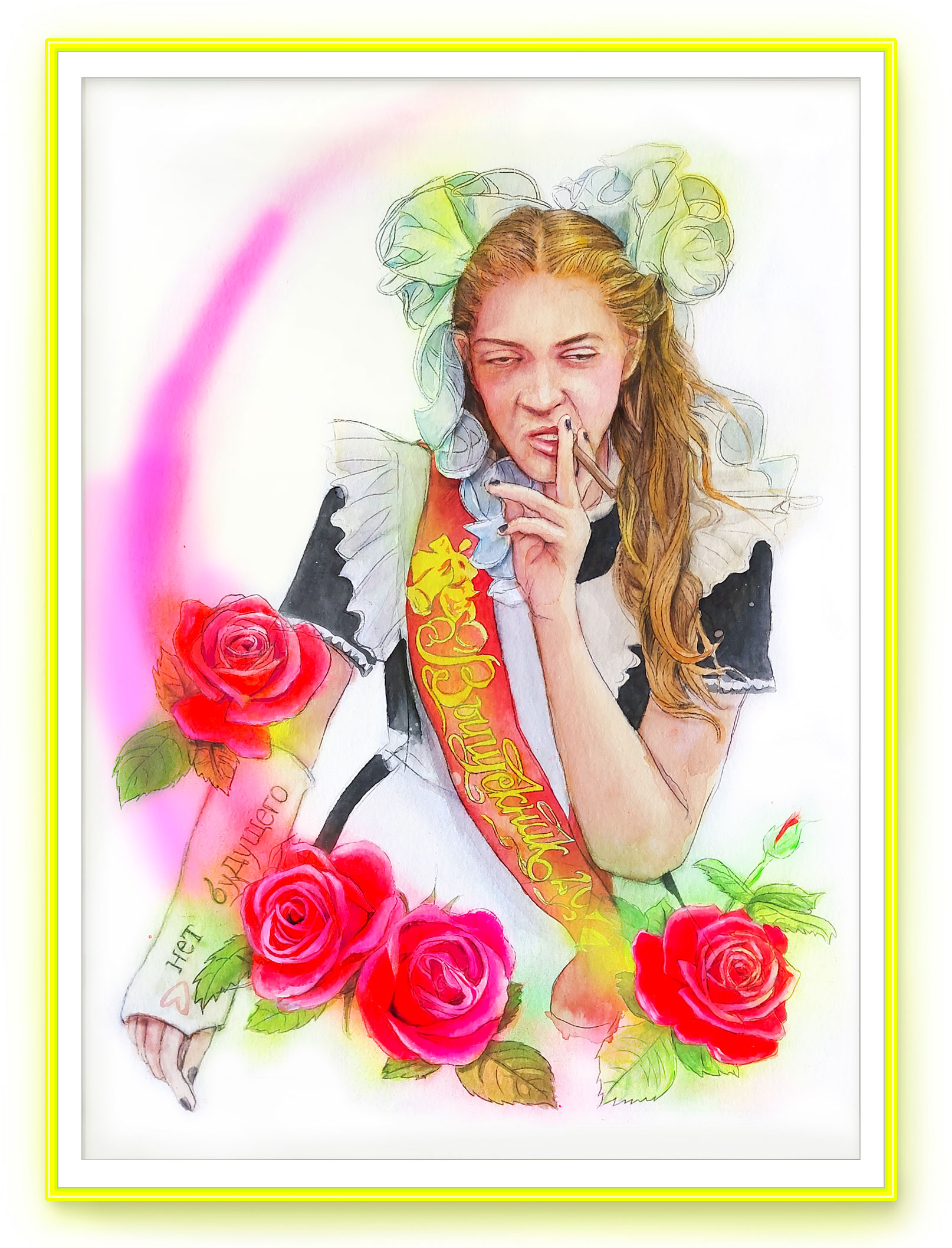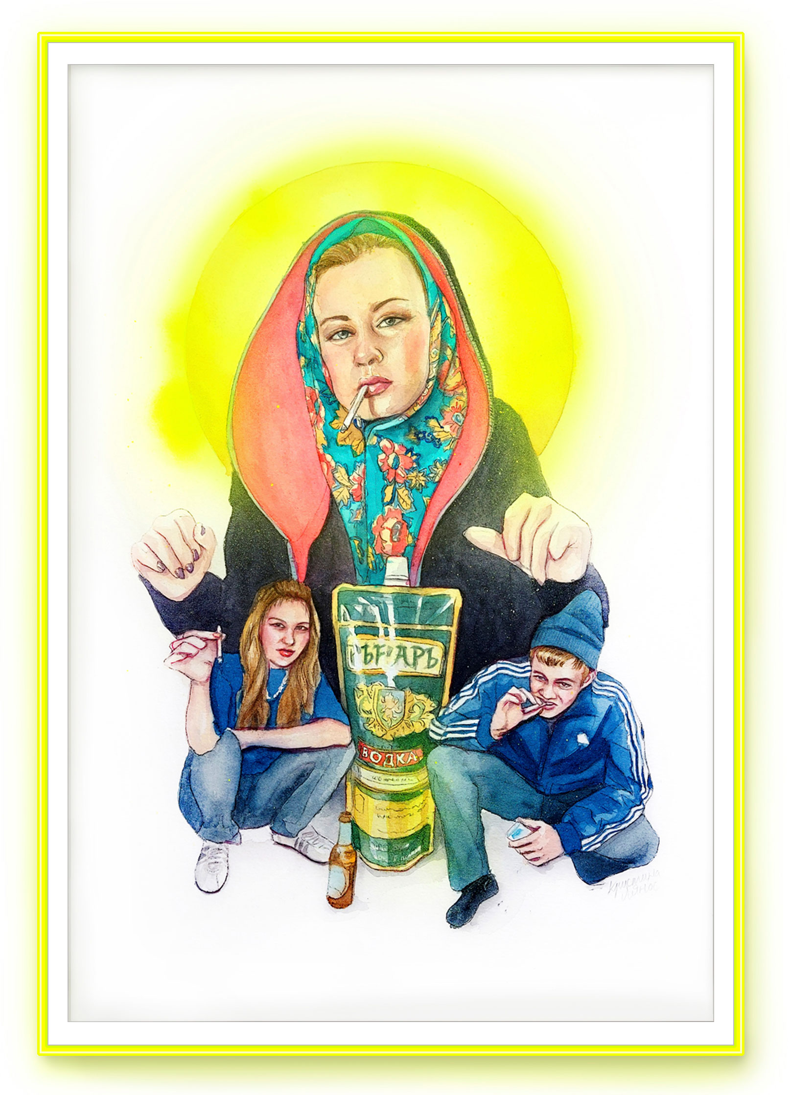 Utilizando sus extraordinarias dotes para el dibujo y la acuarela, una de sus señas de identidad, la artista plantea un recorrido anárquico, desprejuiciado, incisivo y a veces violento sobre sus impresiones de aquellos años. Una juventud que vivió la Perestroika, pero cuyo halo estético y cultural sigue presente hoy, herida y en cierta medida aculturizada por el propio proceso histórico, que muestra su rabia con mordiente violencia, que encuentra en el lumpen y lo marginal su razón de ser, que concibe el hecho vandálico como una oportunidad legítima de protesta, encajonada entre los viejos valores comunistas y los nuevos valores del capitalismo oligarca.